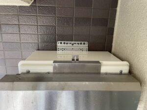 給湯器の上が特にフンが多く、鳩が集まっていたと分かったので、剣山を置くことで物理的に止まれないようにしています。
