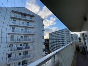 お向かいのマンションが写真に映っていますが、このように向かい合って建つマンションは鳩が集まりやすい傾向があります。