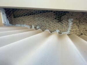 わずかな隙間ですが、ムクドリも体は小さいので、金網で覆い、シリコンで固定しました。