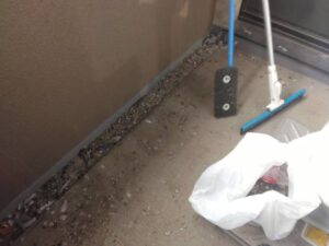 まずはベランダ内のゴミや堆積した糞を丁寧に撤去。