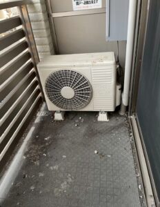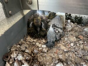 点検にお伺いしたところ、なんと室外機の下に鳩のヒナがいることが判明。